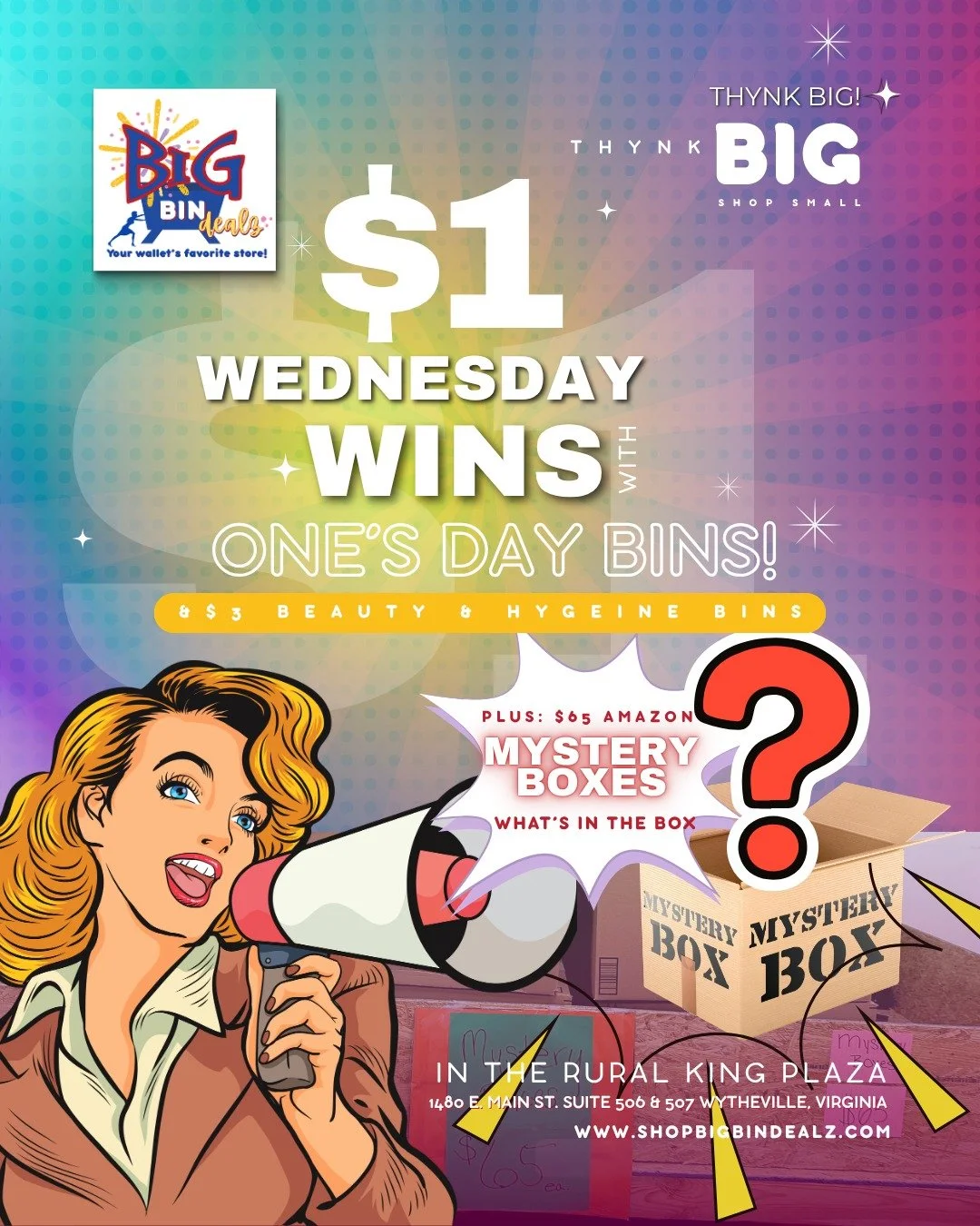 THYNK BIG: BIG BOX STORES. BIG OVERSTOCKS. BIG DEALS. THYNK BIG BIN DEALZ - YOUR WALLET'S FAVORITE STORE! 〰️
